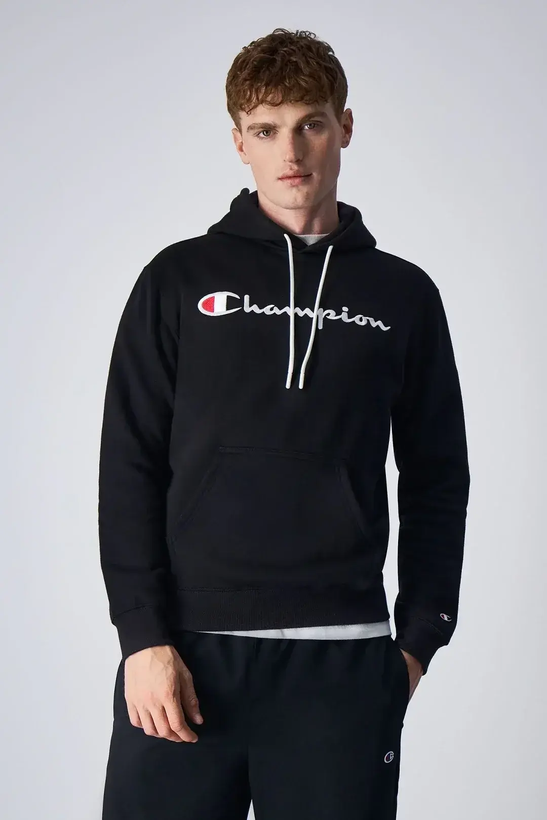 Embroidery Script Logo Fleece Hoodie Siyah